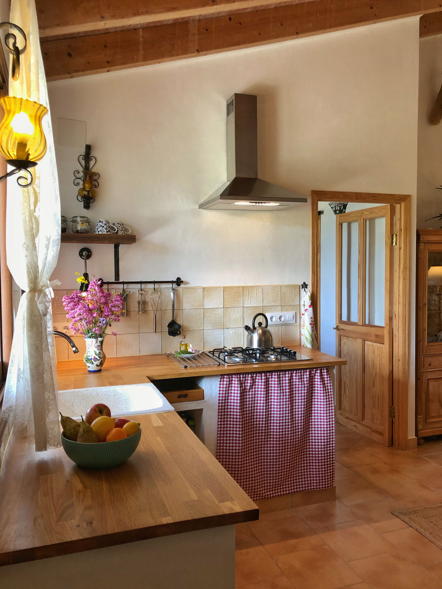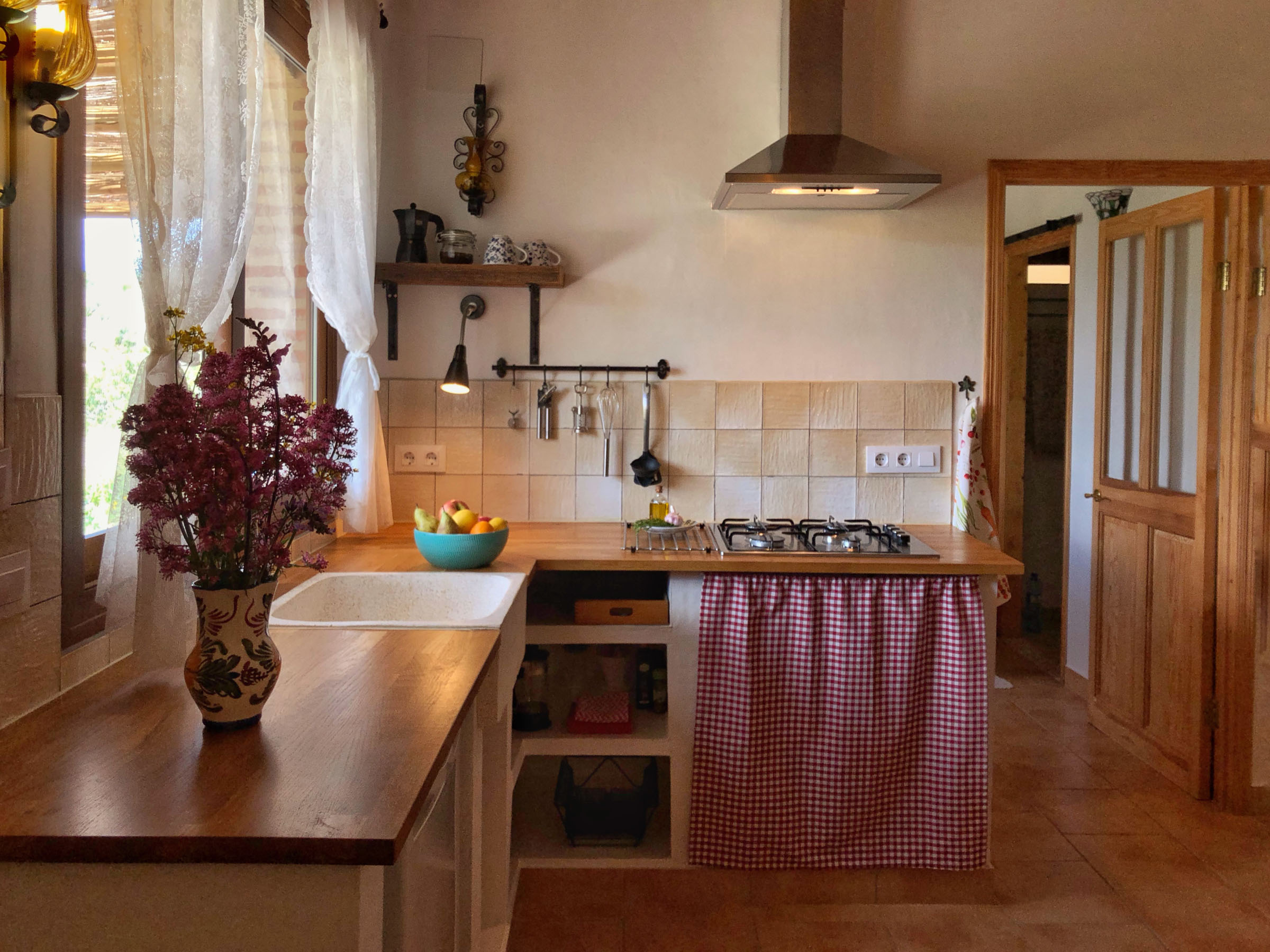 Casita Almendra is gerenoveerd tot een modern verblijf, zodat je van alle gemakken bent voorzien tijdens jouw vakantie in Tàrbena. Toch zijn de authentieke kenmerken van het pand duidelijk zichtbaar; deze worden sterk benadrukt door de typische Spaanse inrichting. Achter het bed in de slaapkamer vind je een nisje in de muur en kiezels van het strand vormen de vloer van de douche. Ook heeft Almendra de originele natuurstenen muur van het de ruine, een riurau. Deze muur loopt door van de woonkamer tot in de badkamer.