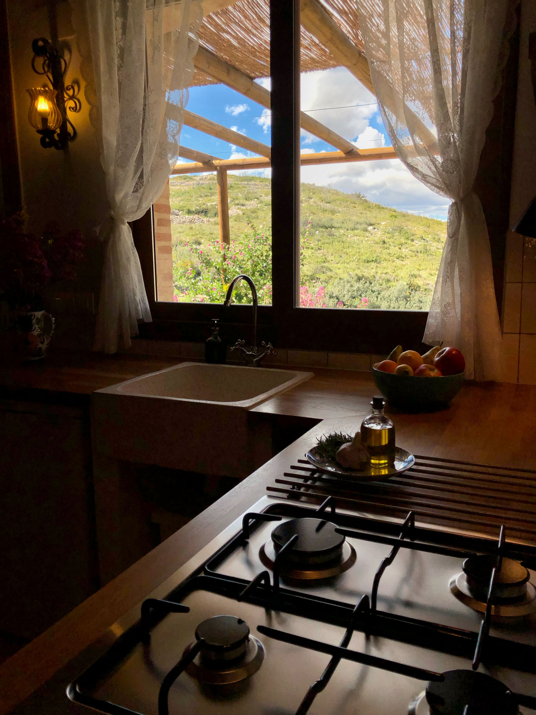 De bergkam waar Can Elisa is gebouwd ligt aan de zeekant van de berg. Door deze verbinding met de zee hebben we de hele dag een verkoelende zeebries over ons land waaien. Om schaduw te creëren hebben we aan de voorkant van de huisjes een pergola gebouwd.